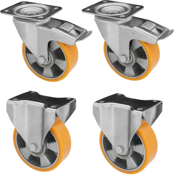 Koła z bieżnikiem poliuretanowym fi 160 mm - 2x skrętny z hamulcem 2x stały - KOMPLET