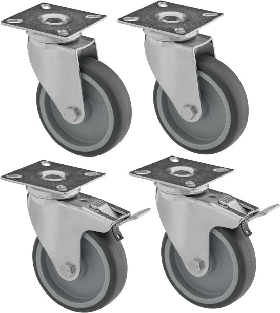 Koła z termoplastycznej gumy - fi 100 mm - 2x skrętne 2x skrętne z hamulcem - KOMPLET