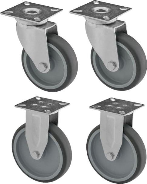 Koła z termoplastycznej gumy - fi 100 mm - 2x skrętne 2x stałe - KOMPLET