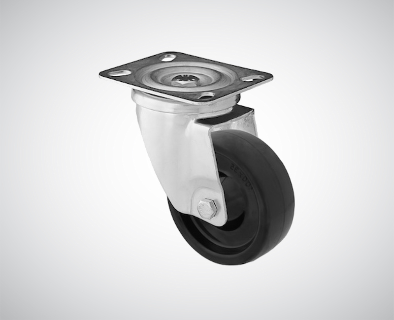 Zestaw kołowy wykonany z ocynkowanej blachy stalowej, koło z tworzywa termoodpornego. Mocowanie na płycie w głowicy skrętnej na łożysku kulkowym.