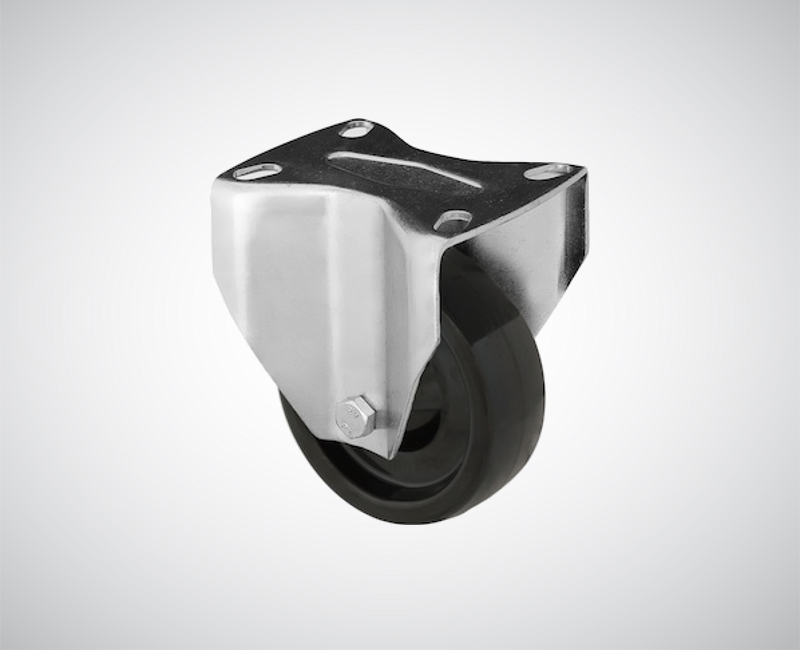 Zestaw kołowy wykonany z ocynkowanej blachy stalowej, koło z tworzywa termoodpornego. Mocowanie na płycie w głowicy stałej na łożysku kulkowym.